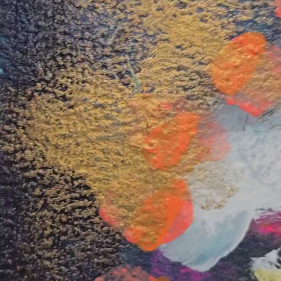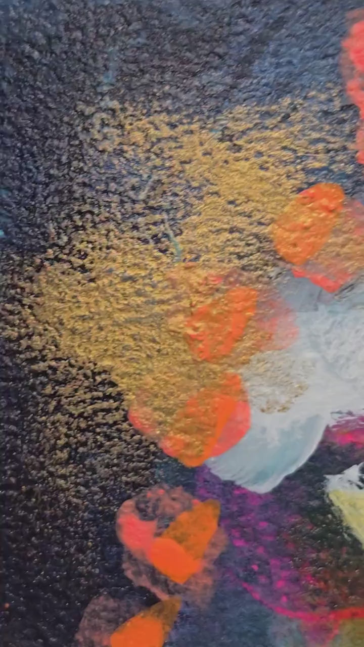 Abstract hand painted original mixed media paintings on paper. 5 x 7 painting with hues of pink, yellow and blue with gold accents. This mini painting would be perfect for a gallery wall.